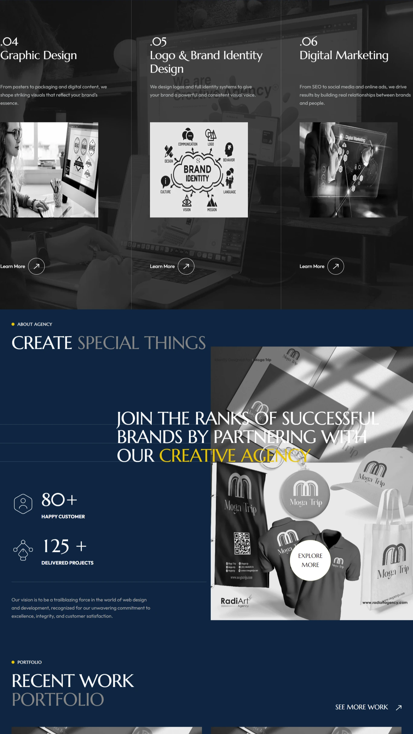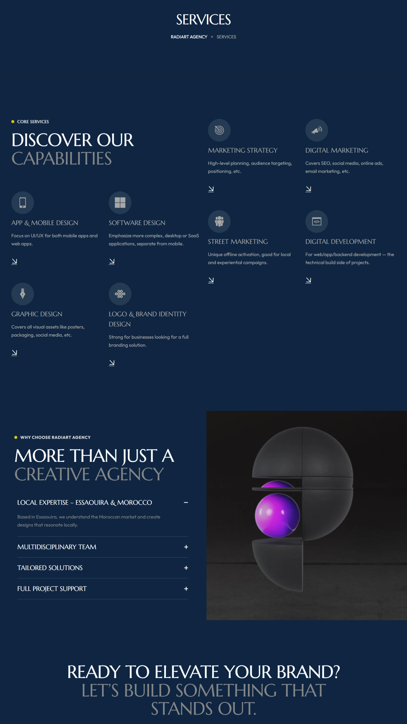 Radiart Agency, one of my long-term partners, needed a modern website to showcase their creative services and growing project portfolio. They wanted a platform that reflects their brand identity, allows their team to easily update content, and highlights their work in a visually engaging way, all while remaining fast, scalable, and professional.